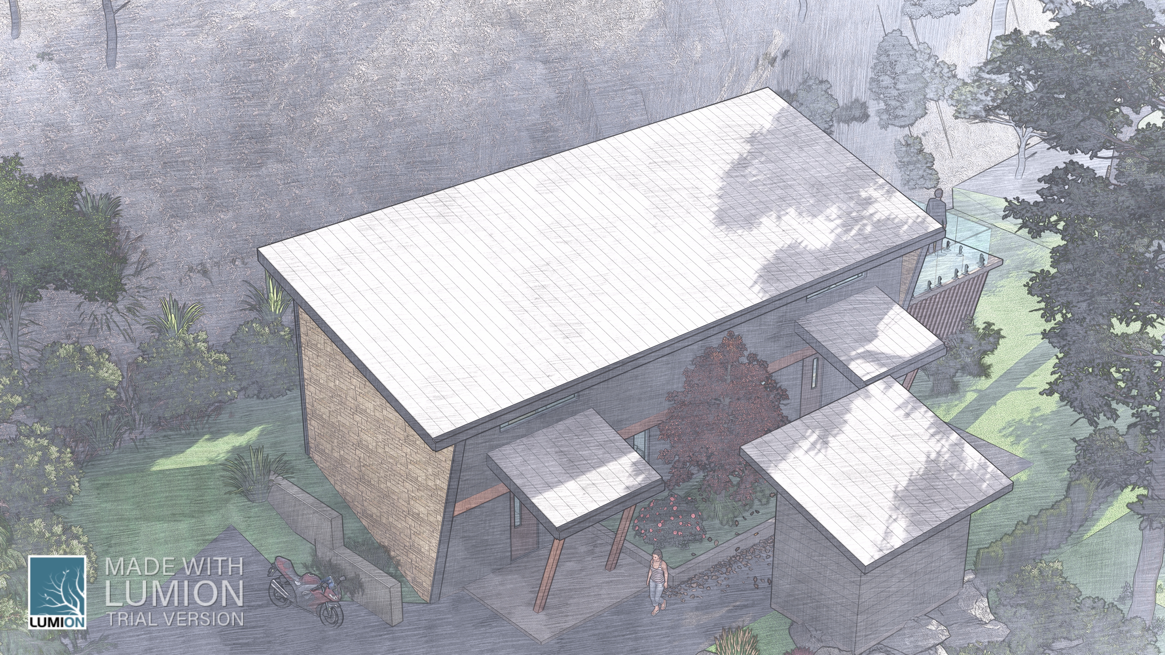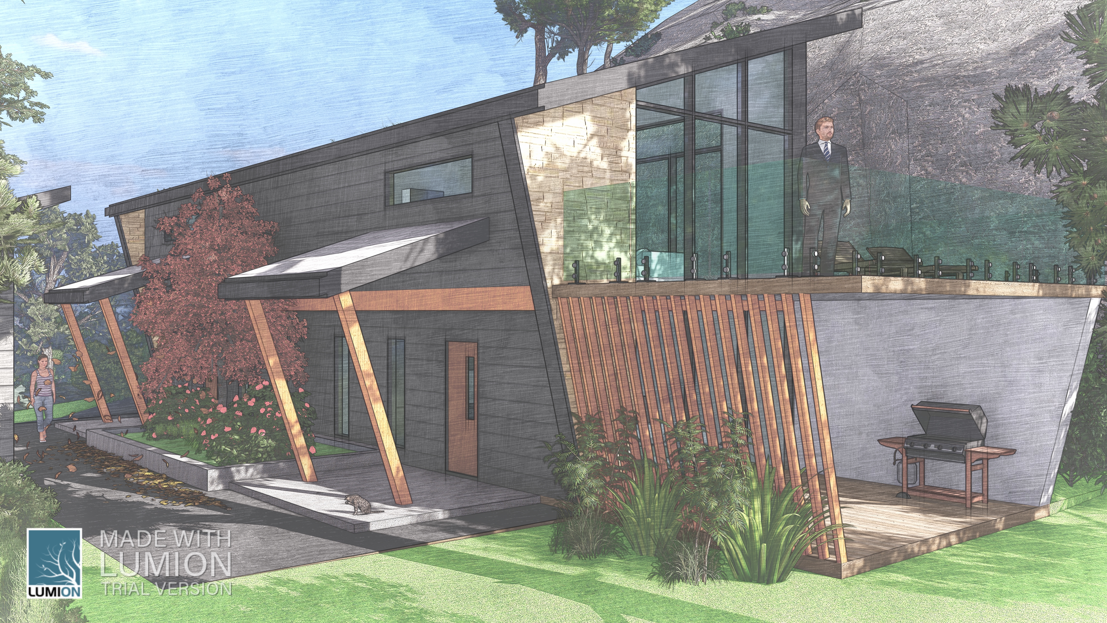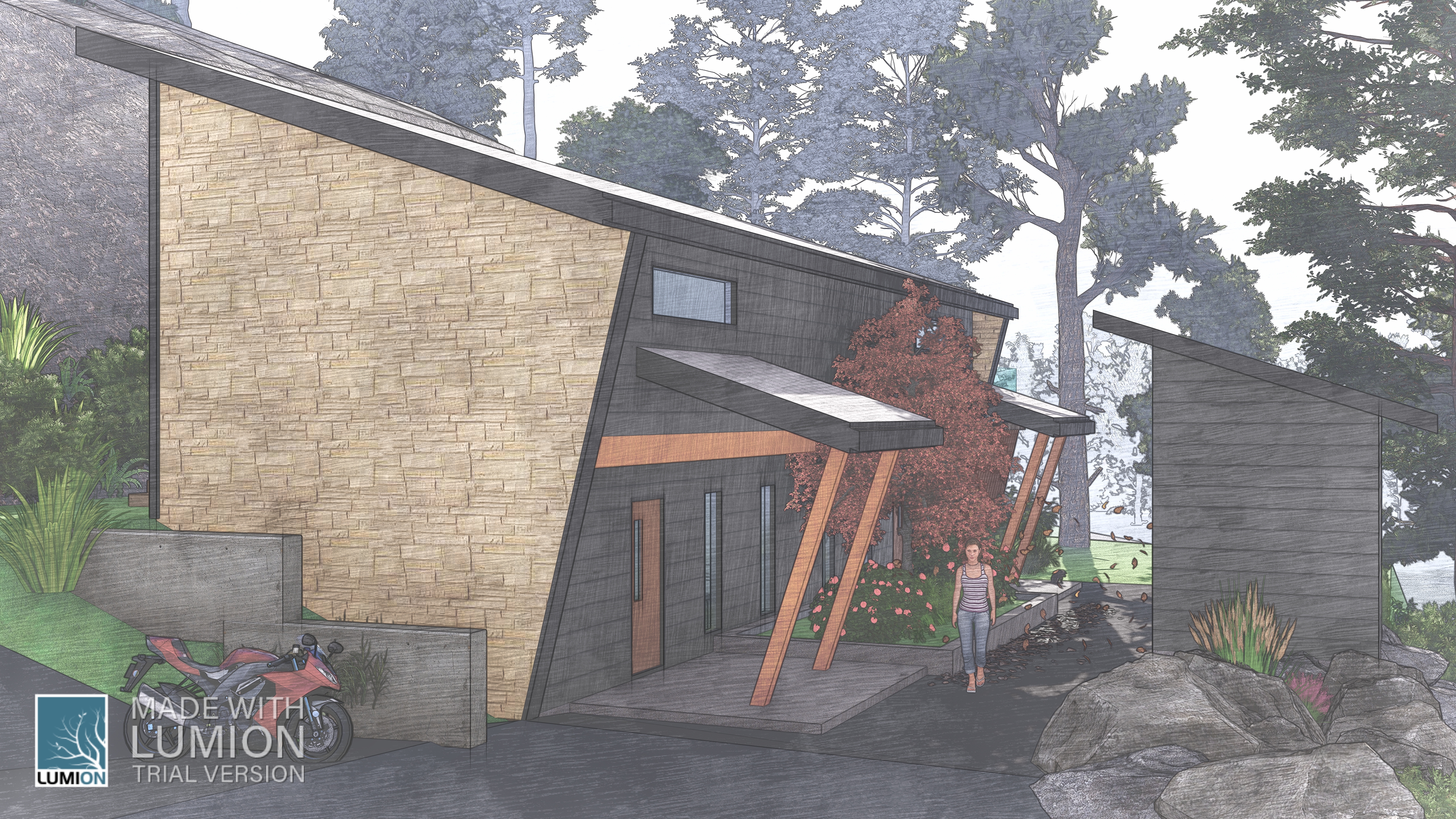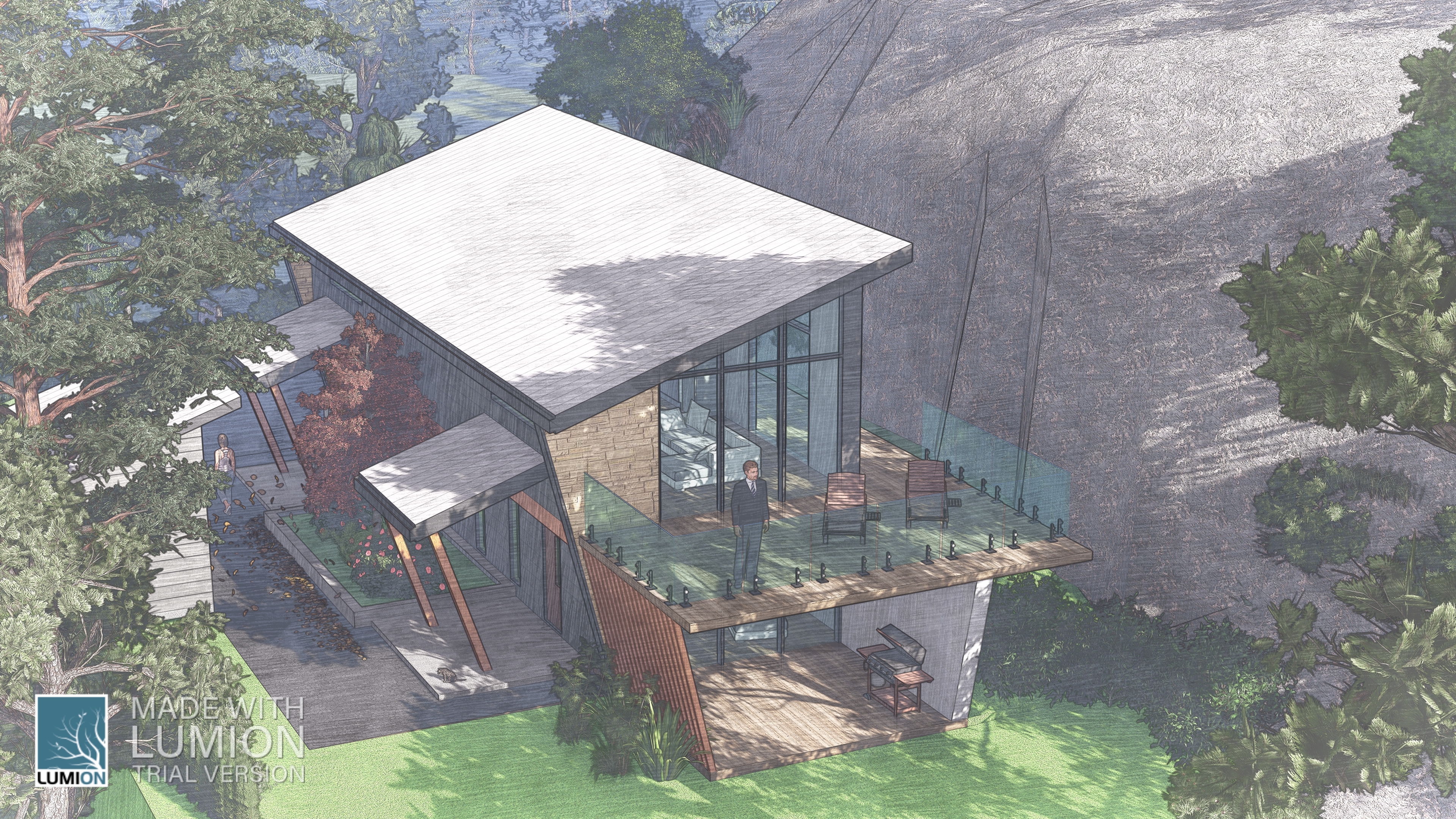 The site’s dramatic slope—from west to east—adds character. A formidable rock outcrop at the lot’s center shapes the landscape. Here, we tread lightly, respecting nature’s contours.